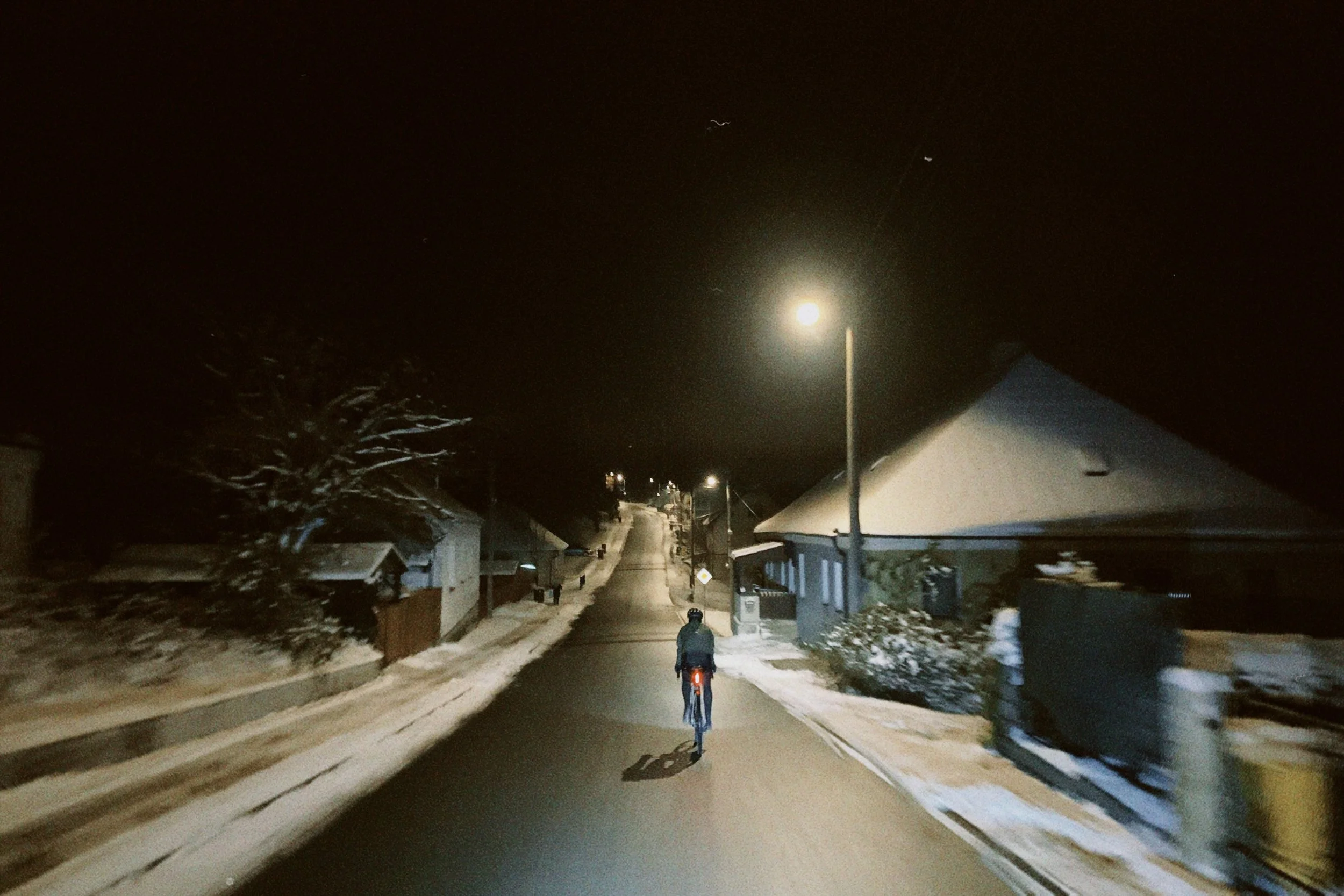 It is Wednesday, around 16:21, the sun is almost gone and we are leaving snowless Olomouc. The urge to go for a ride is greater than any common sense we have. The weather forecast doesn't mean anything either. Nothing can stop us. This was the stoke before the ride although I have a tiny idea how our journey will unfold, but sometimes bad decisions make good memories.
