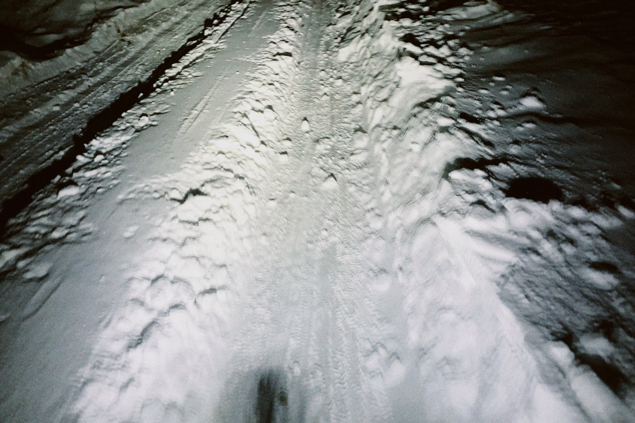 Štrasgrunt, our favourite climb, I tell myself, from the gate entrance the road won't be ploughed from the snow and we're screwed. Win again, the road is almost clear, just two ruts from the logging trucks and packed snow is almost like asphalt. As we climb up the valley the snow amount increases and the temperature drops. Degree by degree it stops at -8°C.