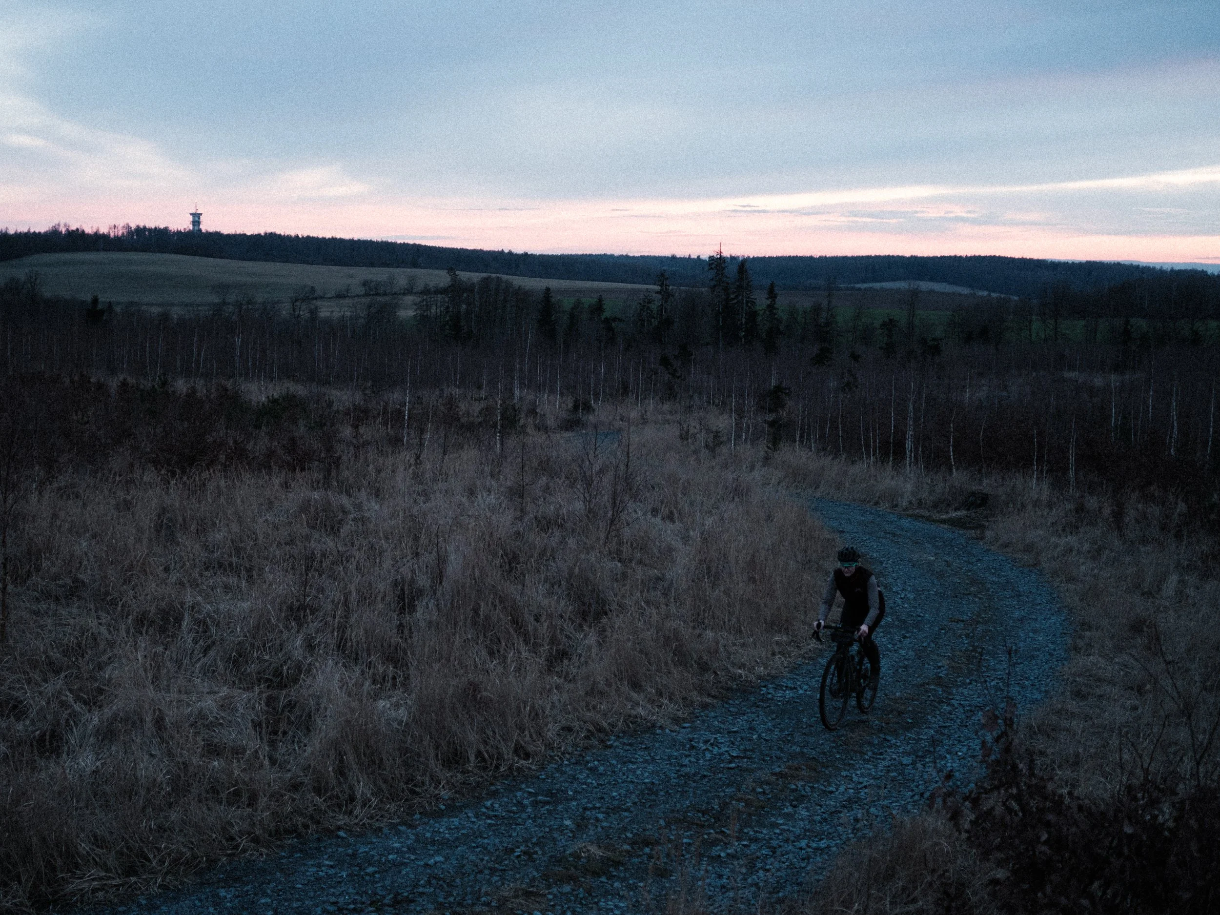 We’ve adapted the rout creation to the sunset–even though there won't be a super beautiful one. We still enjoyed it in the middle of a field looking into the flats of Haná. Rolling hills in the distance with multiple layers of clouds each shining with different color.