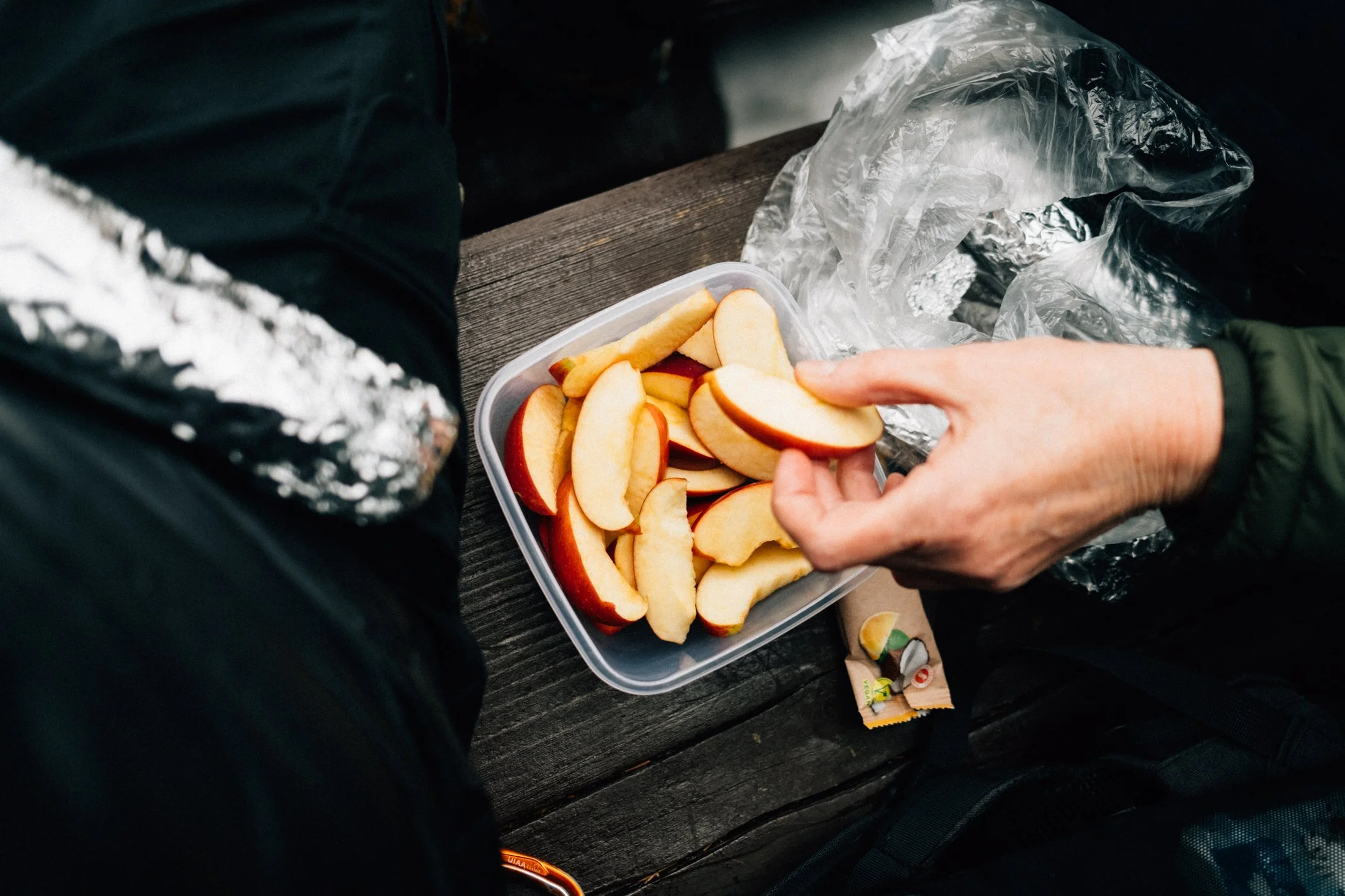Since the rocks stick out of the forest, it’s pretty windy up here. But if we sit down in a sheltered spot, it’s not so bad. We hang out for a while, munch on some apples, soak up the sun, and just stare off into the distance. Honestly, I don’t feel like leaving at all.